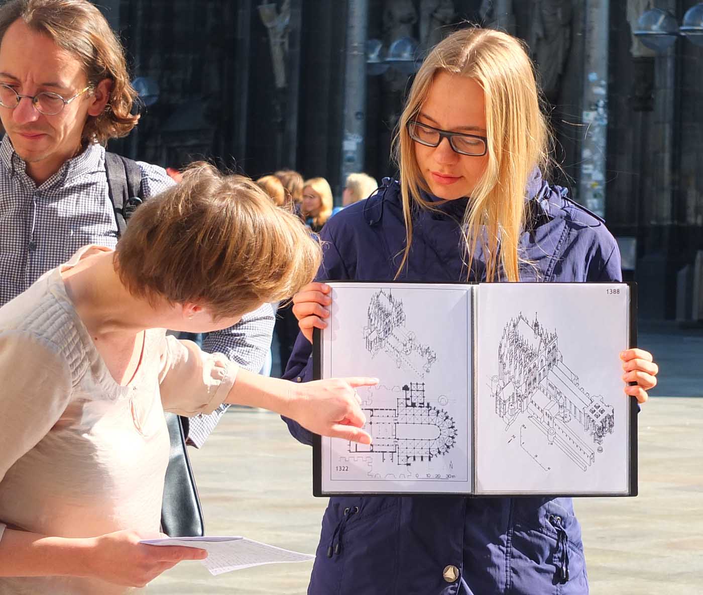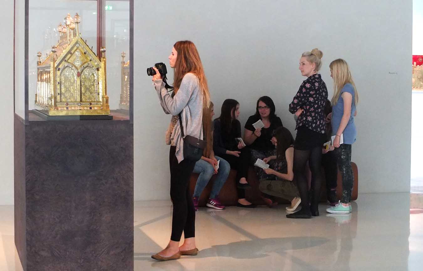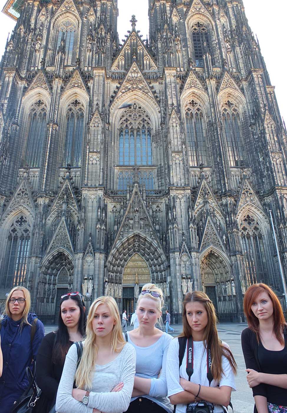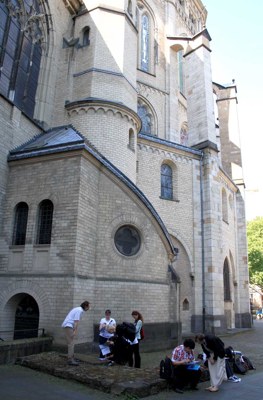 Zajęcia na terenie kompleksu katedralnego w Aachen wprowadziły uczestników w szeroki kontekst historyczno-kulturowy dawnej Nadrenii. Katedra w Aachen – na Liście Światowego Dziedzictwa UNESCO od 1978 – to przykład bezcennego zabytku kultury, kumulującego w sobie cały szereg istotnych wartości, ponadto – stanowi też świetne exemplum przemian ideowych, funkcjonalnych, architektonicznych oraz historycznych nawarstwień. Studenci mieli też okazję wejścia na emporę kaplicy pałacowej. Osobnym punktem harmonogramu było zwiedzanie wystawy czasowej Karl der Grosse – Macht, Kunst, Schaetze, w Domschatzkammer, Centre Charlemagne oraz ratuszu akwizgrańskim.