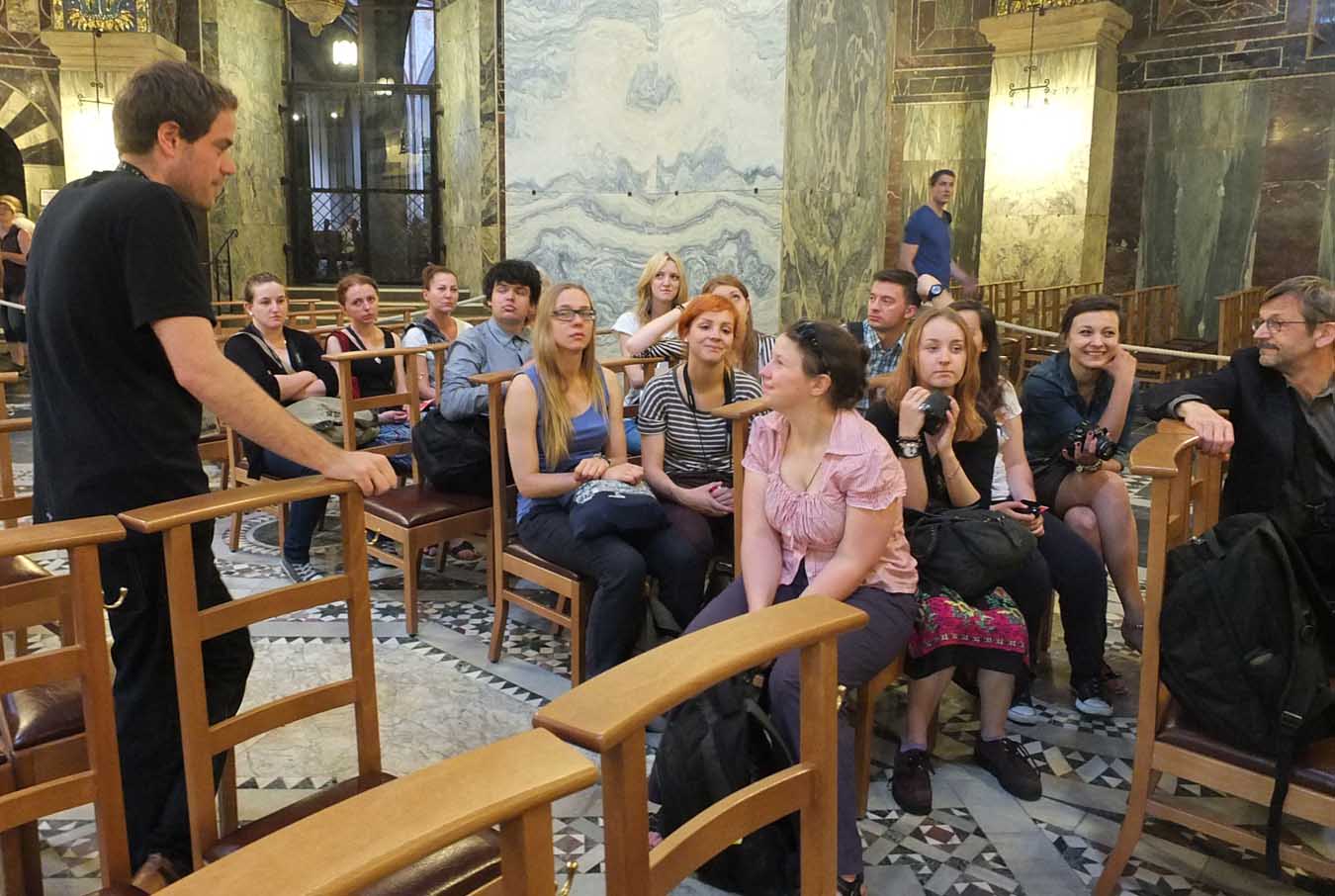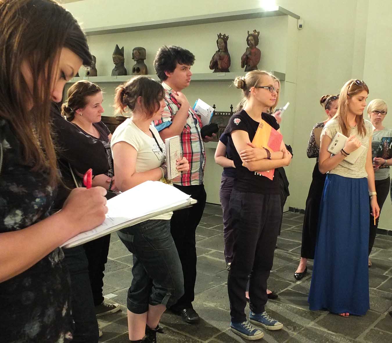 Merytoryczne priorytety wizyty: Ważny przykład z punktu widzenia historii kolekcjonerstwa oraz przykład problemu adaptacji zsekularyzowanego wnętrza sakralnego na potrzeby ekspozycyjne. Studenci wykonali szereg analiz, podsumowujących wiedzę, zdobytą podczas całego projektu; wysłuchali też wykładu, w którym dr M. Woźniak na wybranym zabytku zaprezentował cele, metody i charakter analizy zabytkoznawczej.