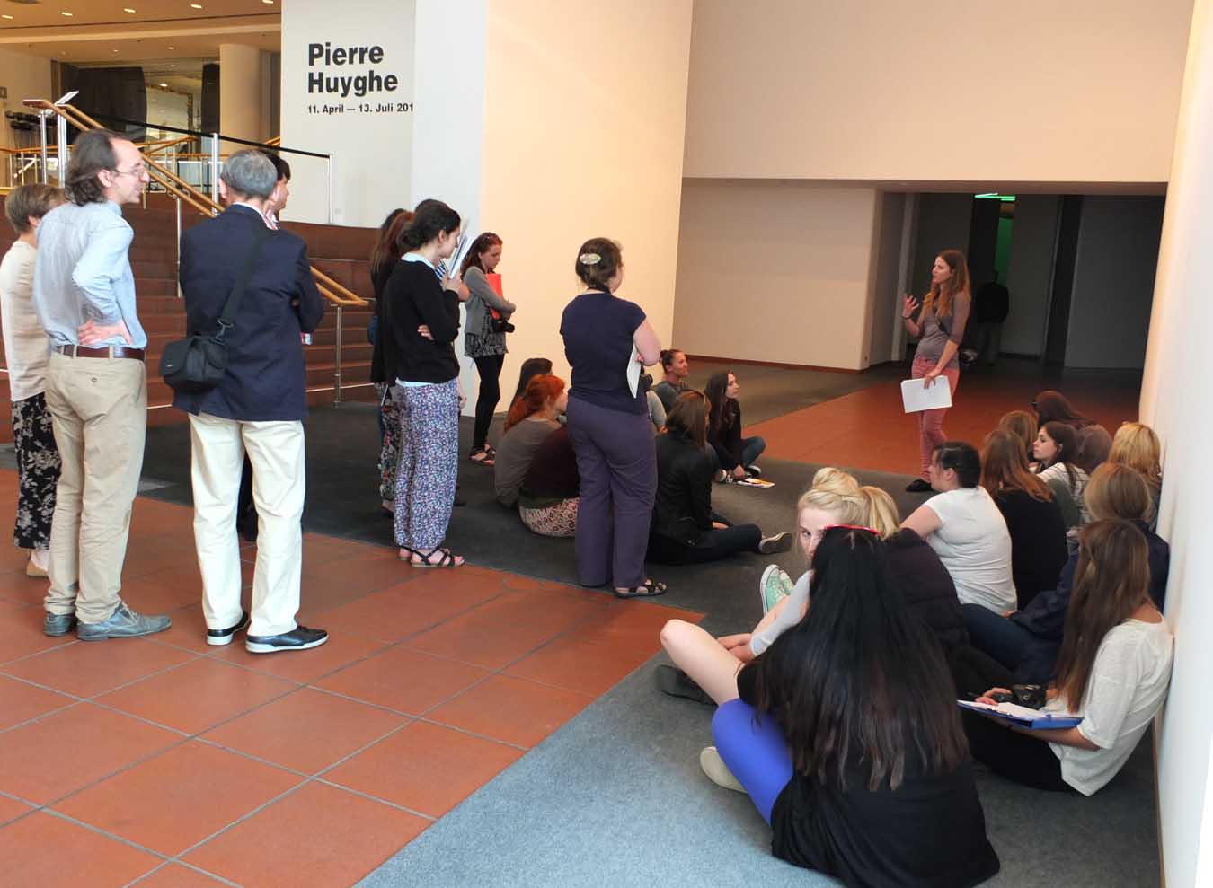 Cel wizyty: analiza relacji pomiędzy budynkiem muzeum a eksponowanymi zbiorami; stref muzealnych; wystaw stałych i czasowych. Studenci wykonywali zadanie pisemne, zwiedzili wystawę retrospektywna Pierre’a Huyghe’a.