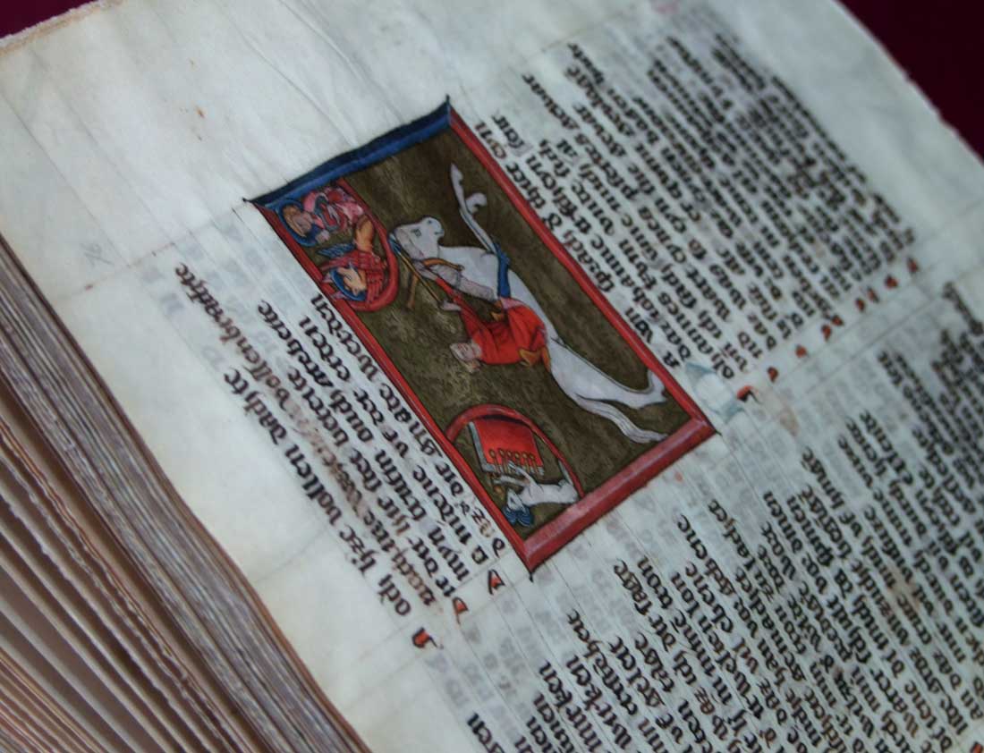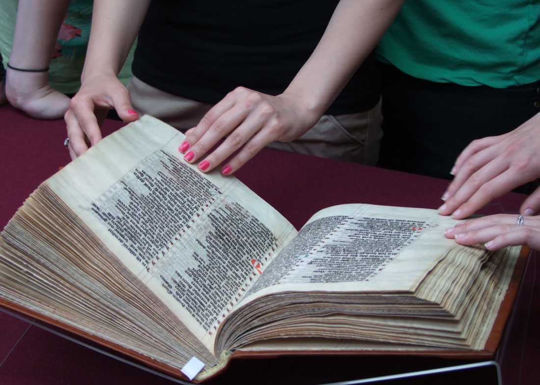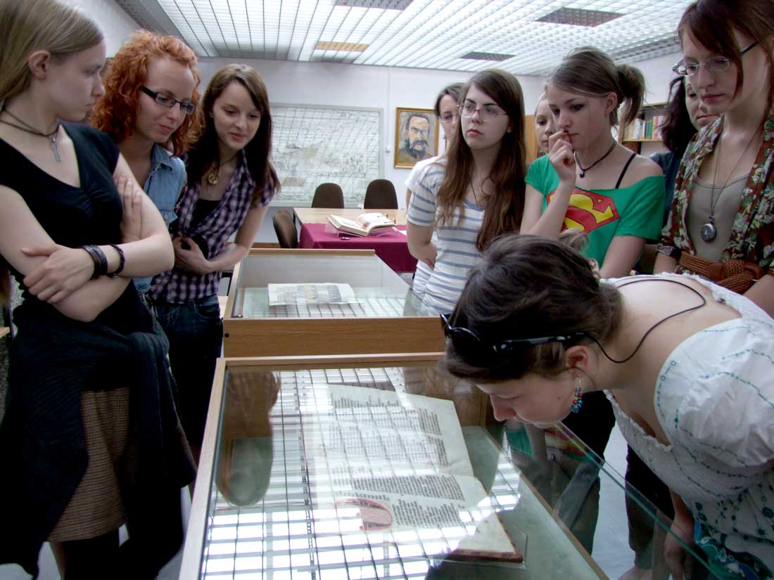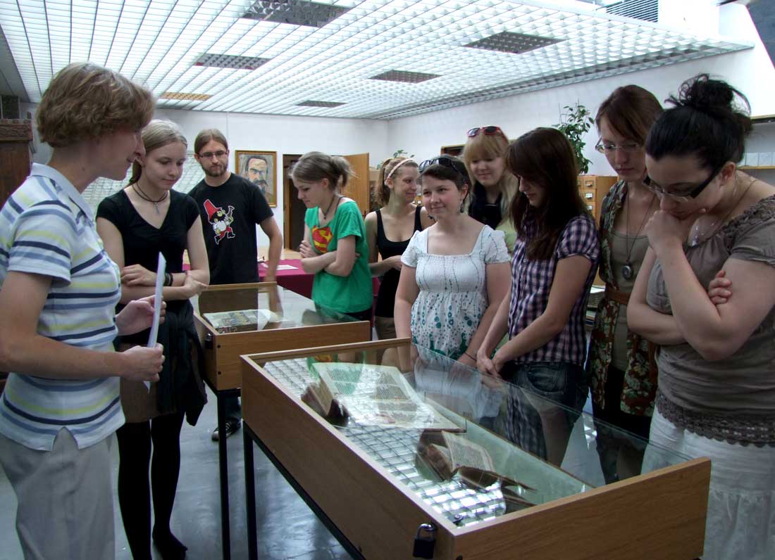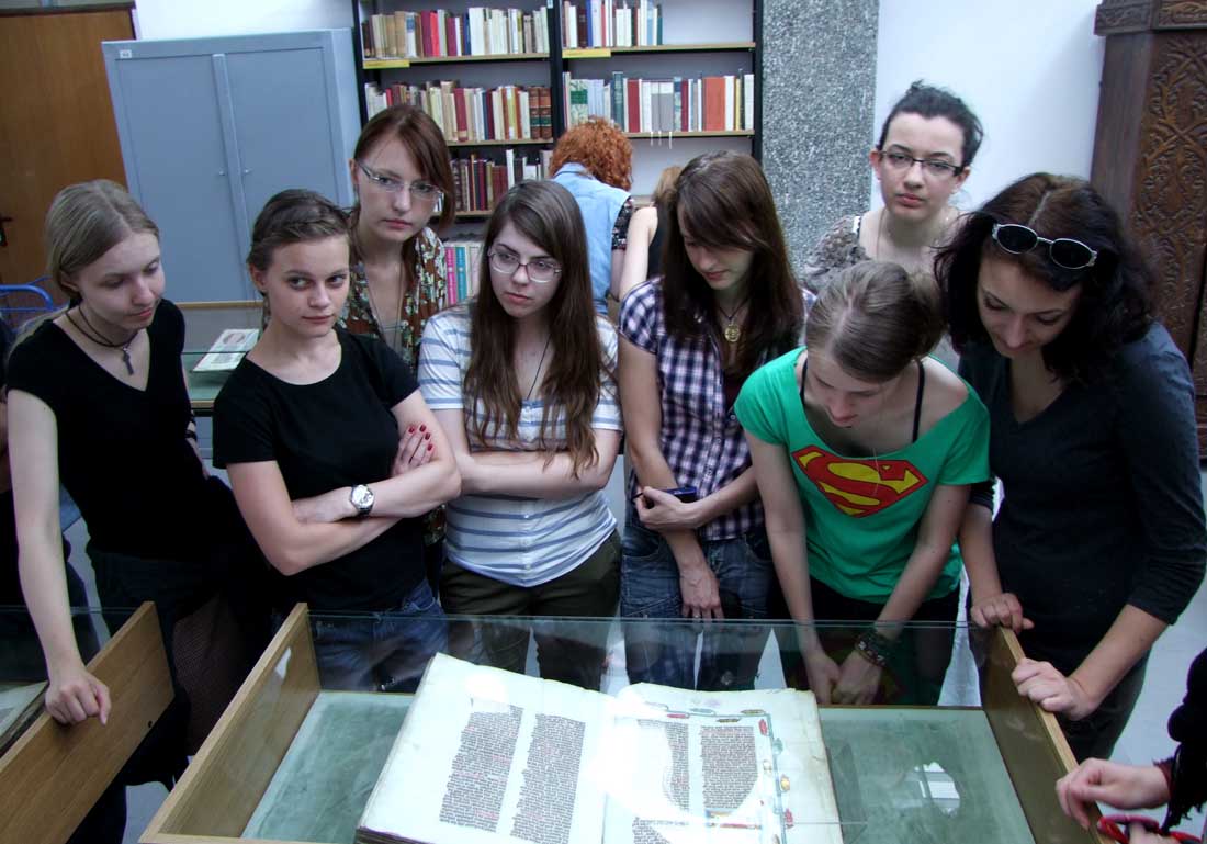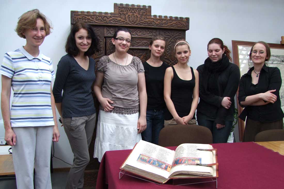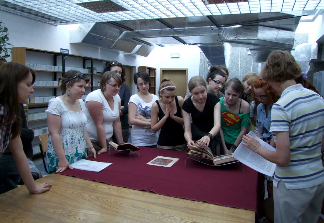 25 V 2012, w ramach konwersatorium ikonograficznego „Treści ideowe sztuki dawnego państwa zakonnego w Prusach”, uczestnicy zajęć mieli wyjątkową okazję zapoznania się z cennymi, krzyżackimi manuskryptami z XIV wieku, przechowywanymi w Bibliotece Głównej UMK. Dzięki uprzejmości dr Marty Czyżak z Gabinetu Rękopisów i Starych druków, studenci zobaczyli najstarszy zachowany kodeks Statutów Zakonu NMP, kronikę Mikołaja Jeroschina, Pasjonał, młodszy kodeks Apokalipsy H. von Heslera (44), Catena Aurea super Lucam oraz niemiecki kodeks Żywotu Doroty z Mątów. Była też okazja dokładnego przestudiowania faksymile słynnego toruńskiego rękopisu Apokalipsy Heslera (cod. 64).