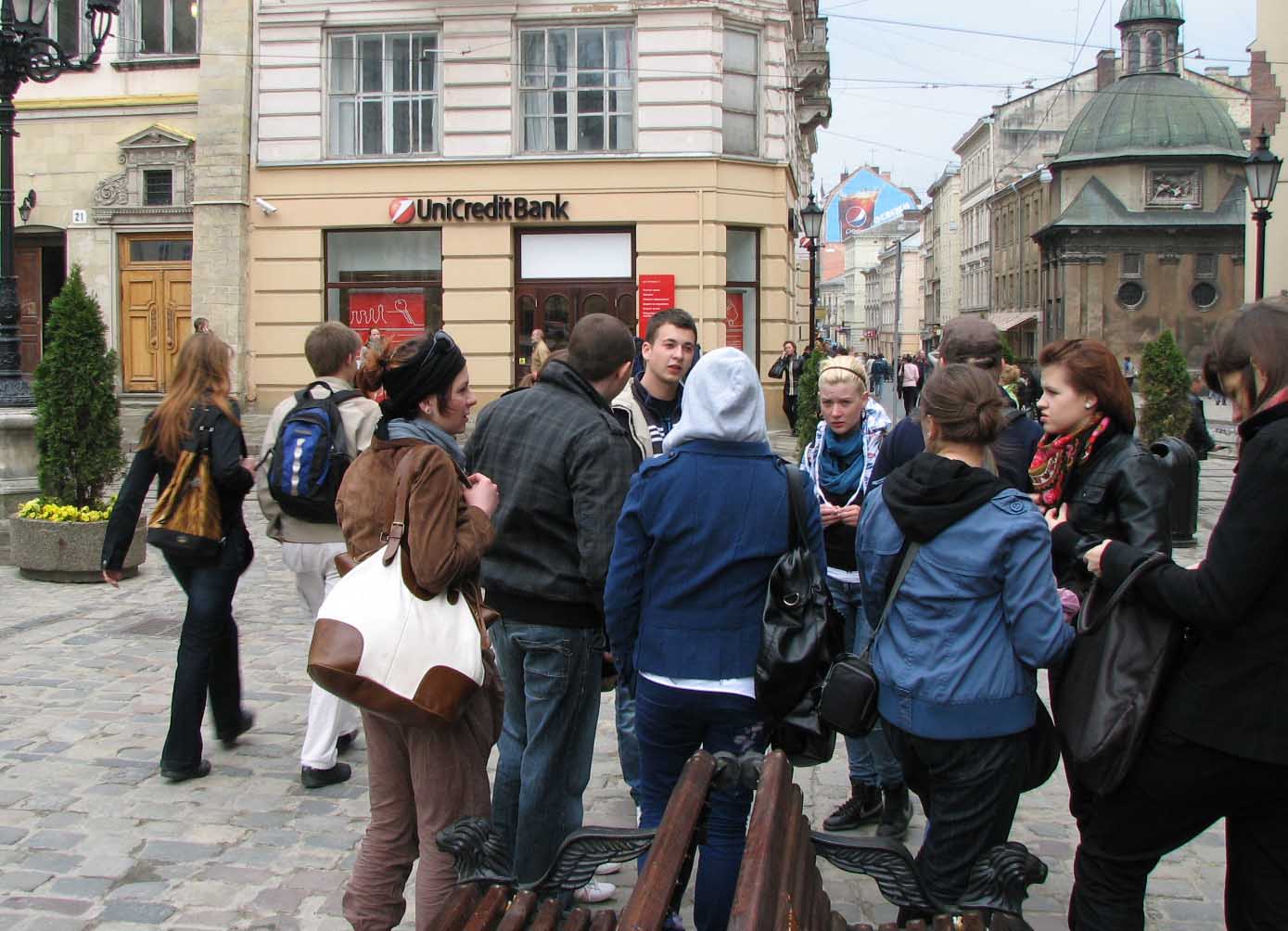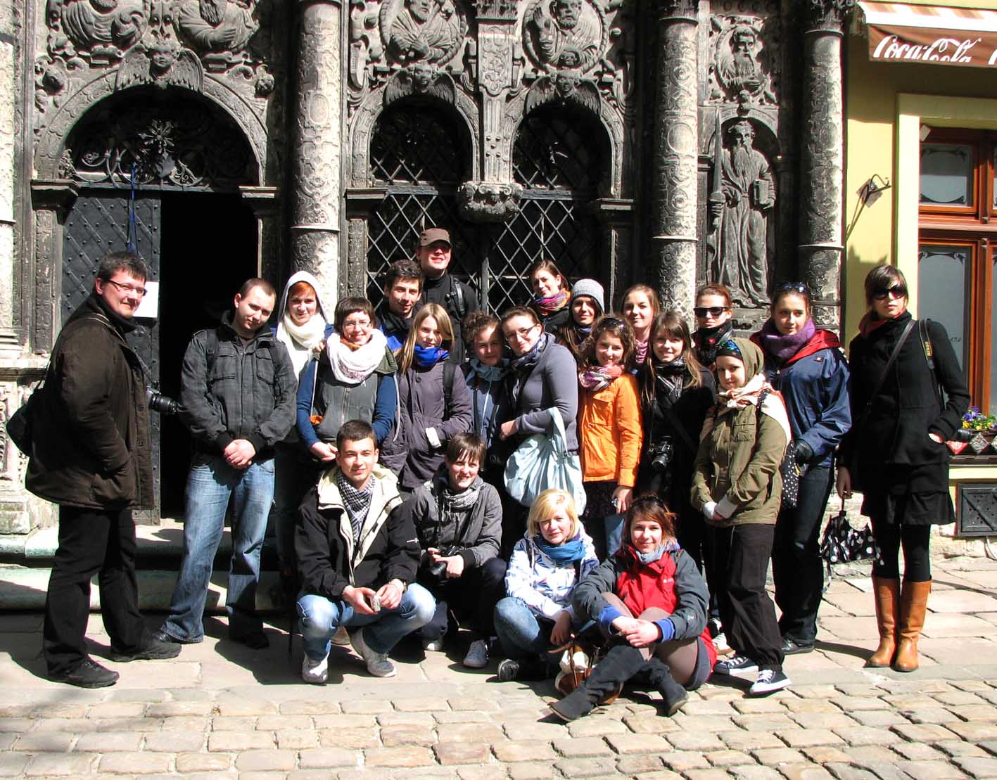 Grupa studencka przed kaplicą Boimów we Lwowie