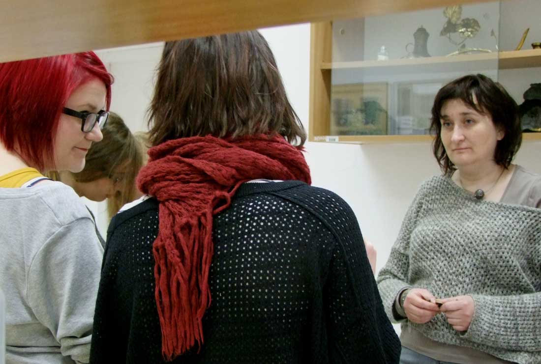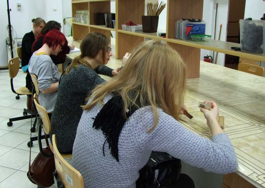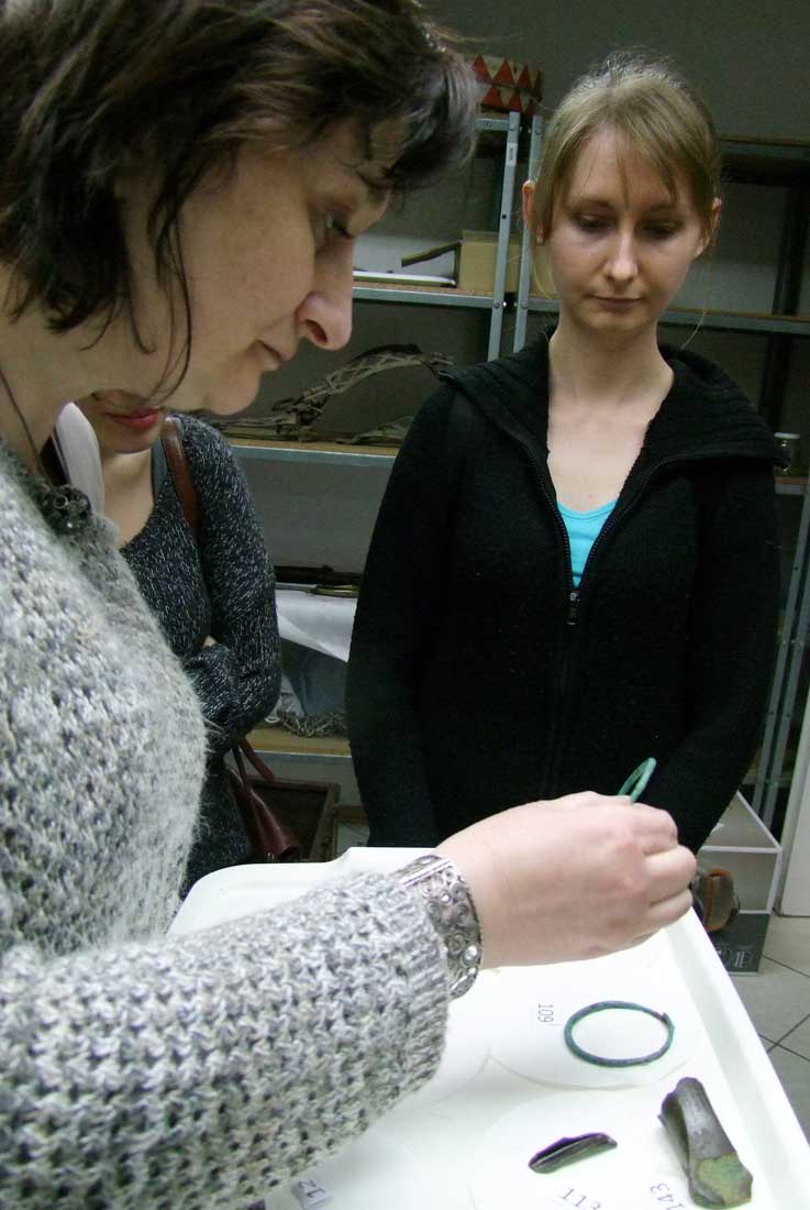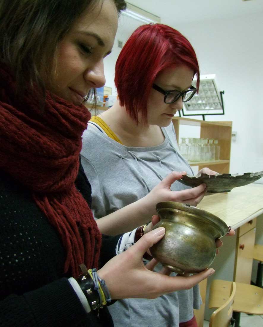 19 XII 2012, w ramach zabytkoznawstwa odlewnictwa studenci II roku 2 st. Muzealnictwa i Zabytkoznawstwa tradycyjnie wzięli udział w zajęciach z materiałoznawstwa i technik metalu, przeprowadzonych przez dr Alinę Tomaszewską-Szewczyk z ZKEiDA. Uczestnicy zapoznali się z właściwościami metali, rodzajami i przyczynami ich zniszczeń, a także – z problematyką technologiczną i konserwatorską zabytków, aktualnie badanych w Pracowni, w tym – wschodnich przedmiotów emaliowanych i prehistorycznych ozdób.