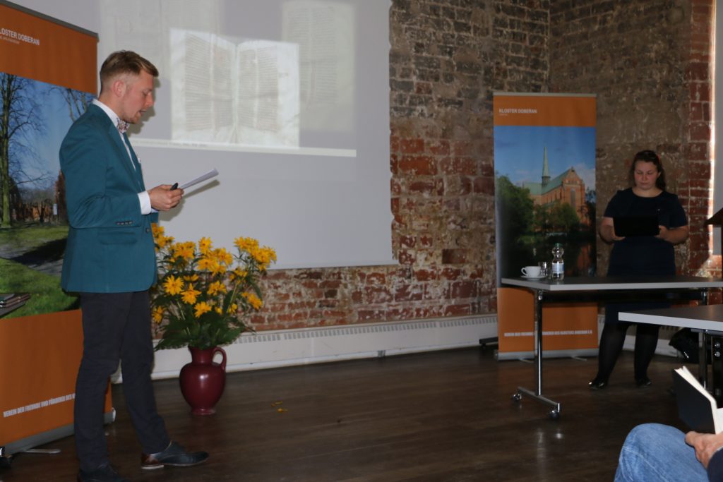 23 IX 2017 r. mgr Mateusz Marszałkowski, doktorant w Zakładzie Sztuki Średniowiecznej i Nowożytnej, wystąpił na Dniach Klasztoru w Doberanie z referatem: Doberaner Handschriften im Tochterkloster Pelplin. Mgr Marszałkowski zaprezentował wyniki swoich badań prowadzonych w ramach przygotowań dysertacji doktorskiej. Referat spotkał się z entuzjastycznym przyjęciem, stając się przyczynkiem do dyskusji na temat losów doberańskiej biblioteki klasztornej i jednocześnie dając okazję do konfrontacji stanu badań z powszechną wiedzą o librarii klasztoru.