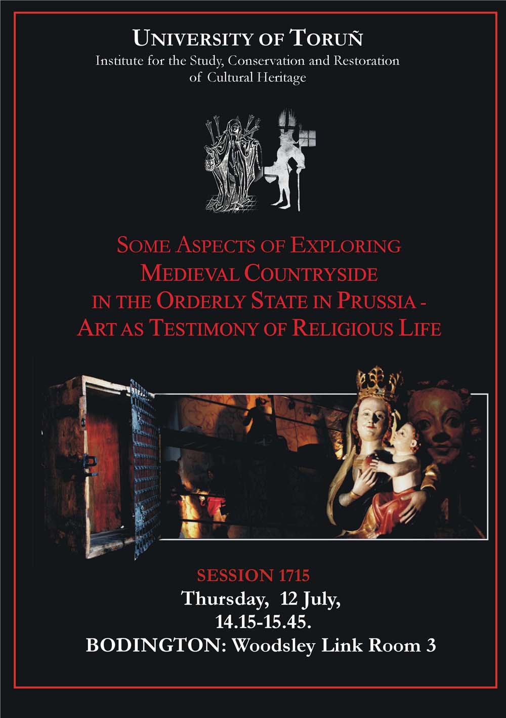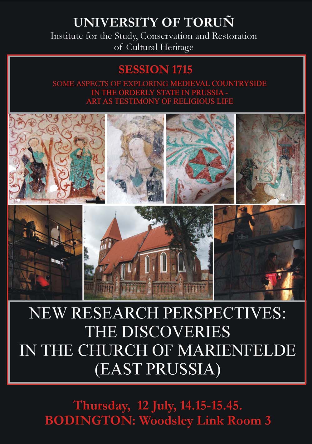 W tym roku po raz pierwszy Instytut Zabytkoznawstwa i Konserwatorstwa przedstawił autonomiczną sekcję referatów, poświęconych sztuce państwa zakonnego w Prusach, Some aspects of exploring medieval countryside in the Orderly State in Prussia – art as a testimony of religious life („Wybrane aspekty badań nad średniowieczną wsią w Prusach – sztuka jako świadectwo życia religijnego”), session 1715. Sekcja ta należała do nielicznych na forum kongresu, poświęconych problematyce artystycznej i stanowiła spójny zespołowy panel, przedstawiający różne możliwości eksploracji kultury wiejskiej w średniowieczu, otwarte dzięki odkryciom konserwatorskim i zastosowaniu nowoczesnych metod interpretacji dzieł sztuki. Referentki, pracujące równolegle w ramach tzw. badań regionalnych, reprezentowały dwa kierunki badań w ramach nauk o sztuce, charakterystyczne dla działalności naukowo-badawczej IZiK. Organizatorem sekcji była dr Monika Jakubek-Raczkowska, moderatorem panelu – dr Emilia Jamroziak (School of History, University of Leeds).