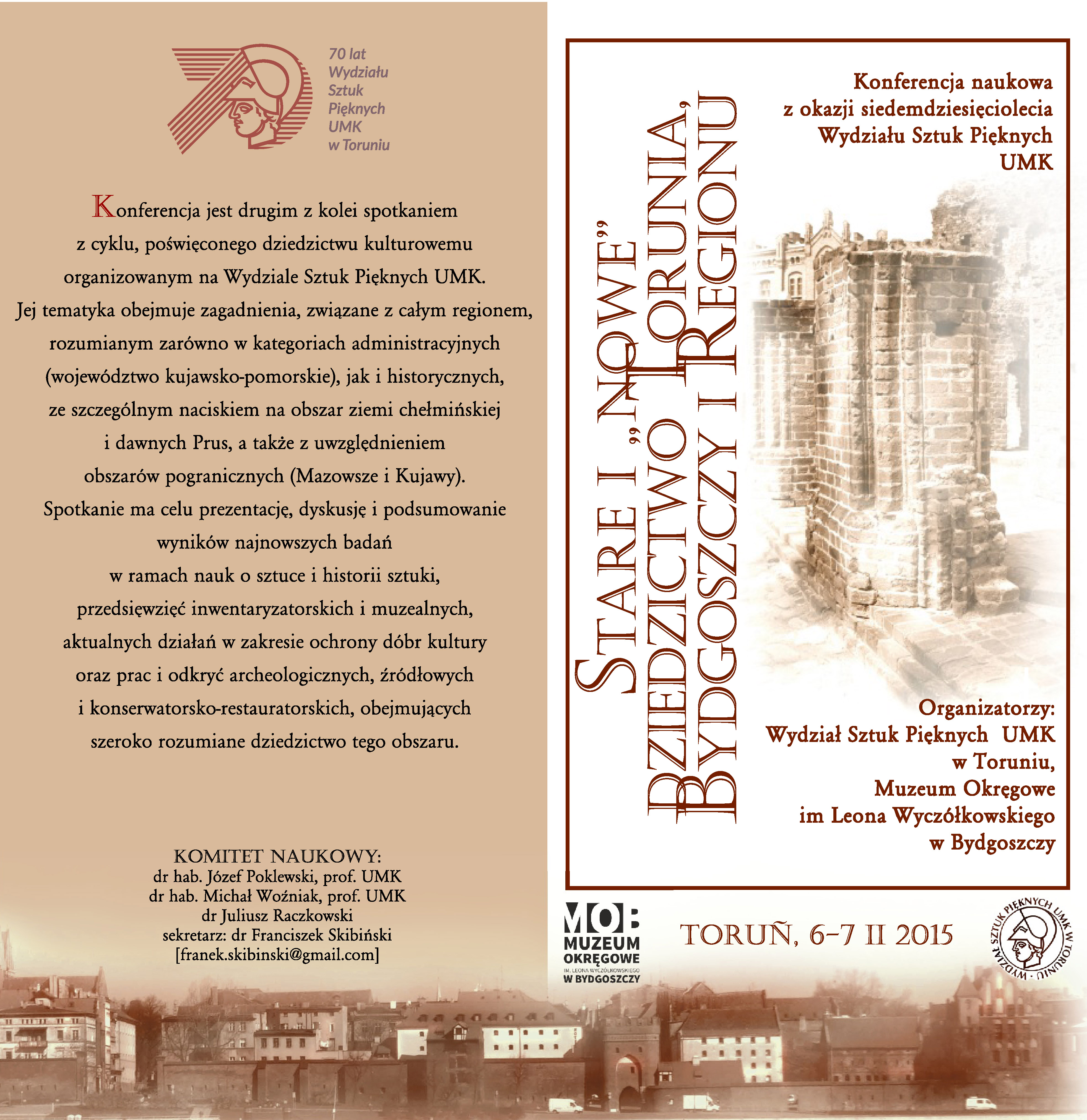 W dniach 6-7 lutego 2015 odbyła się w Toruniu kolejna z cyklu sesja naukowa, poświęcona dziedzictwu Torunia i regionu kujawsko-pomorskiego, zorganizowana w ramach obchodów 70. rocznicy istnienia Wydziału Sztuk Pięknych, we współpracy z Muzeum Okręgowym im. L. Wyczółkowskiego w Bydgoszczy. W komitecie naukowym sesji znaleźli się prof. J. Poklewski, J. Raczkowski, Franciszek Skibiński (sekretarz). Patronat nad obradami przyjęli: Marszałek Województwa Kujawsko-Pomorskiego, Prezydent Miasta Torunia oraz Prezydent Miasta Bydgoszczy.