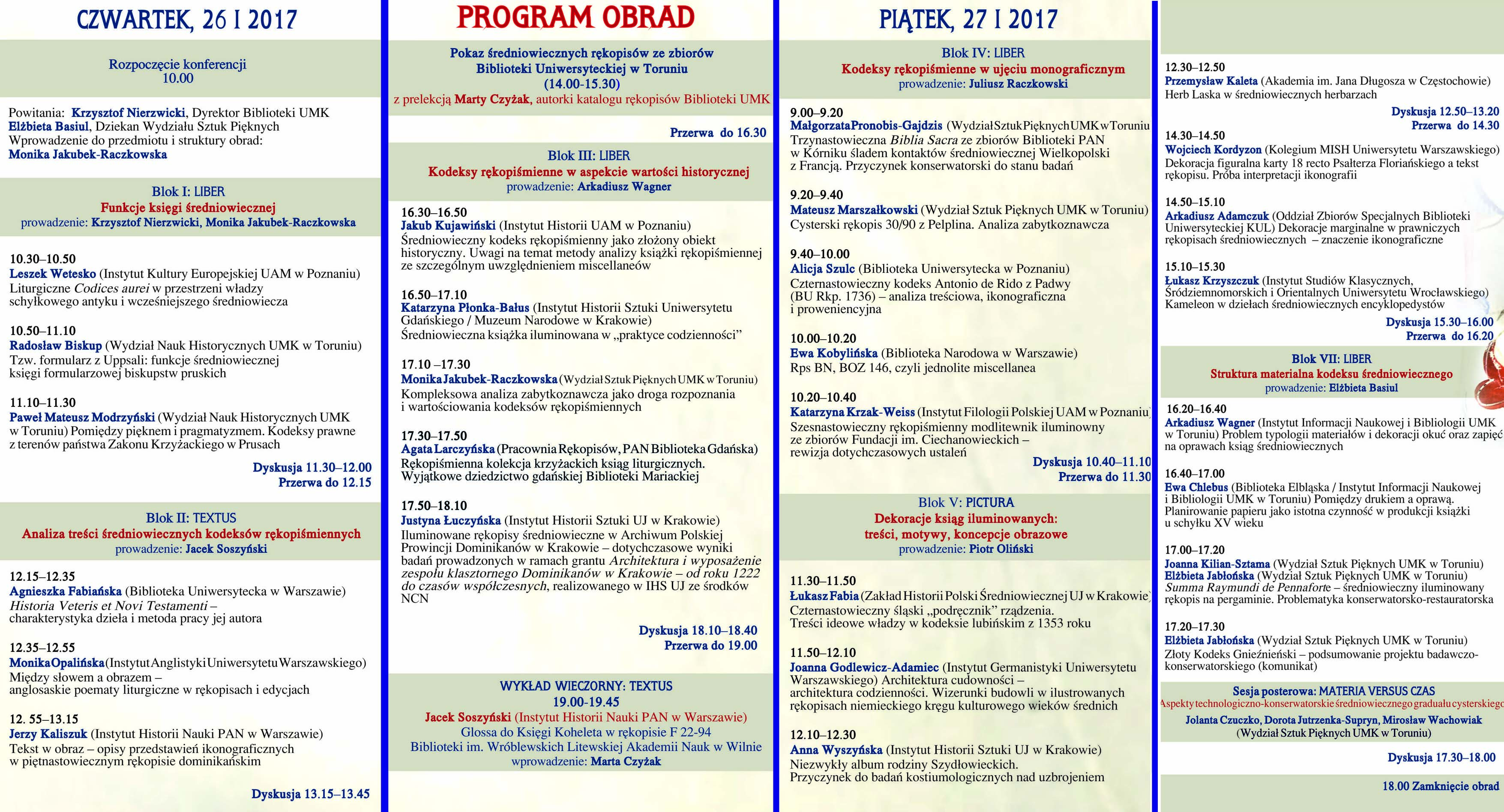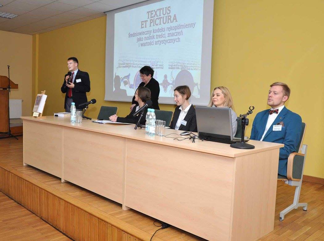 W dniach 26-27 I 2017 odbyła się ogólnopolska konferencja „Textus et Pictura. Średniowieczny kodeks rękopiśmienny jako nośnik treści, znaczeń i wartości artystycznych”, współorganizowana przez Bibliotekę Uniwersytecką w Toruniu oraz Wydział Sztuk Pięknych UMK. Celem spotkania było stworzenie interdyscyplinarnego forum badaczy, zajmujących się problematyką średniowiecznych manuskryptów (historyków, archiwistów, kodykologów, historyków sztuki, konserwatorów dzieł sztuki). Sesja zgromadziła kilkudziesięciu specjalistów z 23 ośrodków naukowych w Polsce. Przedmiotem obrad był kodeks rękopiśmienny, traktowany jako integralna całość, w której oprawny w skórę blok pergaminowych kart jest nośnikiem pisma i różnego typu zdobień, te zaś są nośnikami treści, znaczeń i walorów estetycznych, a szerzej – wartości kulturowych. Inicjatorką wydarzenia i jego współorganizatorką była Monika Jakubek-Raczkowska, funkcję sekretarza komitetu organizacyjnego pełnił Mateusz Marszałkowski, którzy wygłosili tez referaty konferencyjne (M. Raczkowska: Kompleksowa analiza zabytkoznawcza jako droga rozpoznania i wartościowania kodeksów rękopiśmiennych; M. Marszałkowski: Cysterski rękopis 30/90 z Pelplina. Analiza zabytkoznawcza).